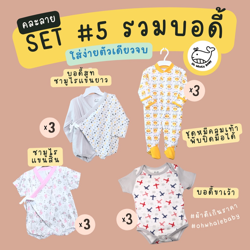 "ยกโหล" โอ้ เวล เซ็ทเตรียมคลอดสุดคุ้ม ชุดหมีคลุมเท้า ชุดผูกหน้า ชุดบอดี้สูทซามูไร คละลาย สำหรับเด็กแรกเกิด