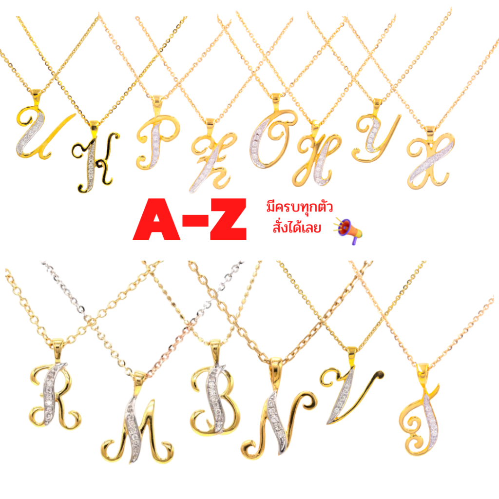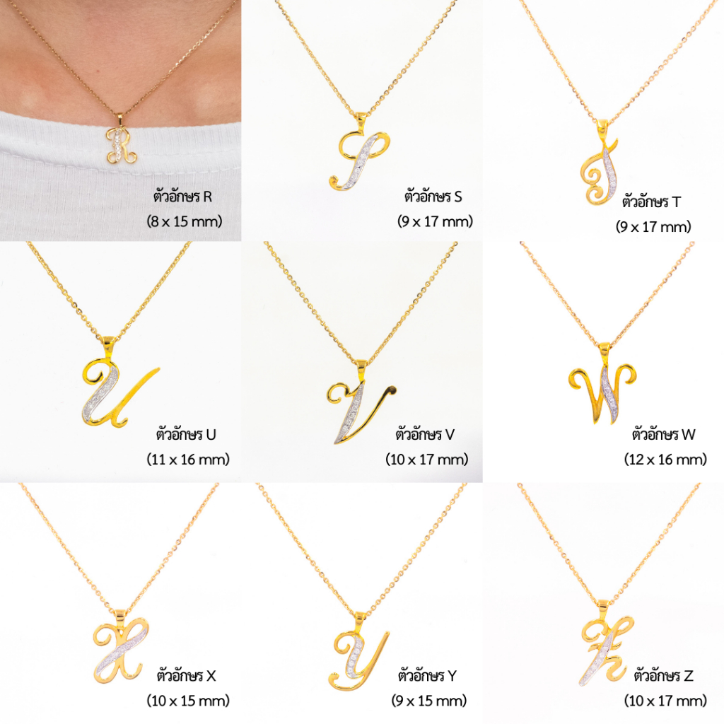 Happy Jewelry จี้ตัวเขียนภาษาอังกฤษ จี้ตัวอักษร สร้อยอิตาลีแท้ เพชรแท้ ทอง9K 37.5%