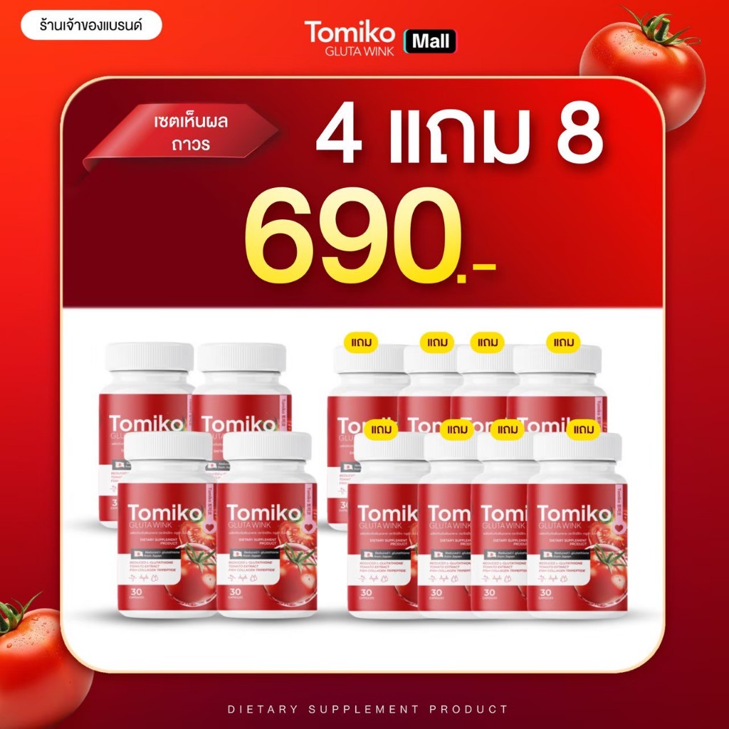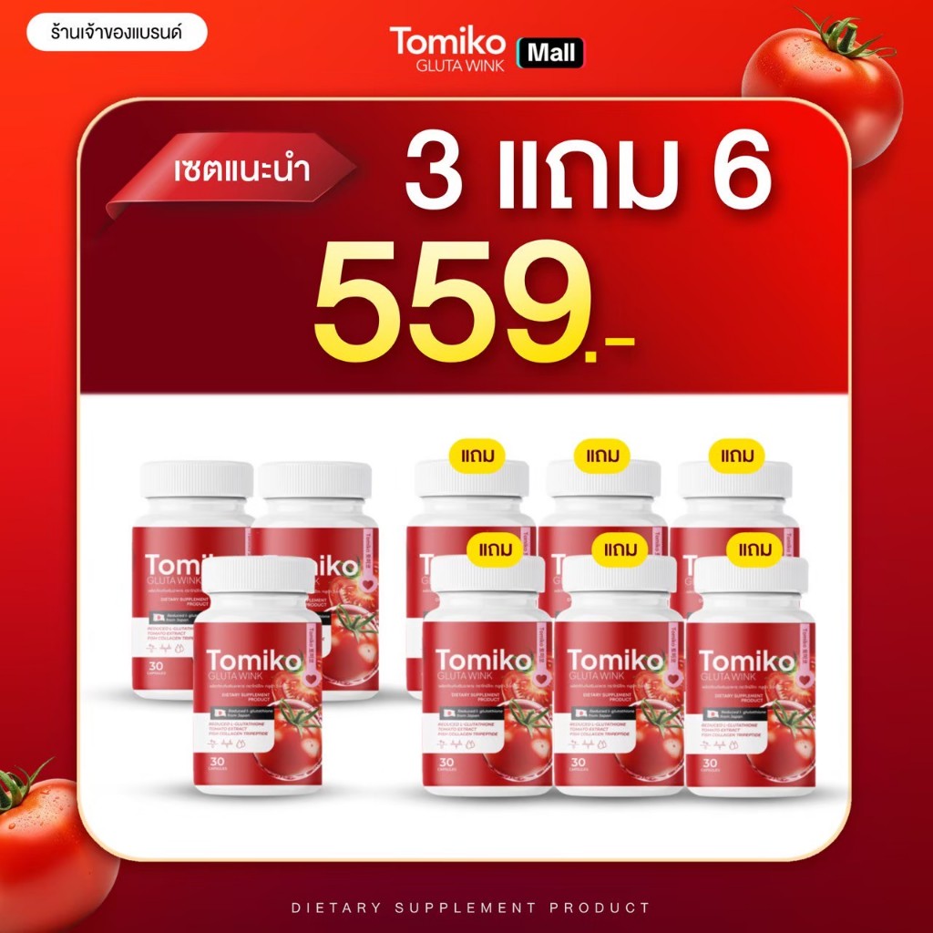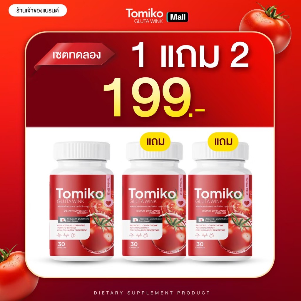 [ พร้อมส่ง ] 1แถม2 Tomiko กลูต้า โทมิโกะ มะเขือเทศ ผิวขาว ออร่า กระจ่างใส ชะลอวัย บำรุงผิว