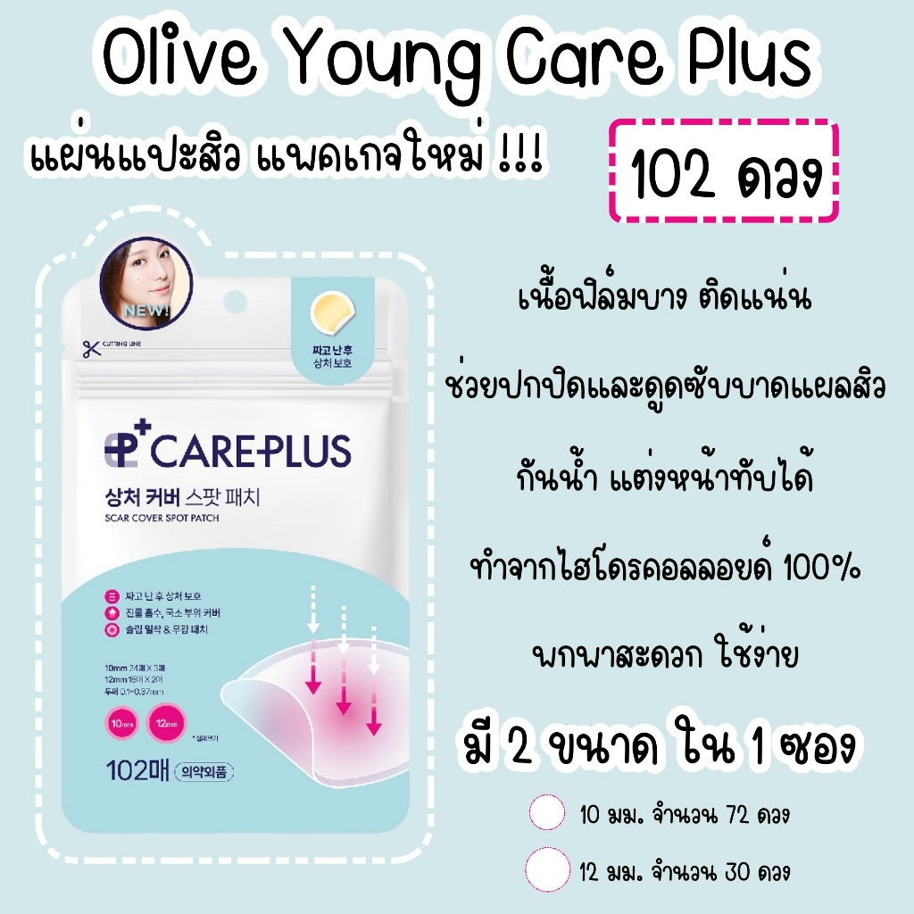 Olive Young Care Plus แผ่นแปะสิว โอลีฟ ยัง แคร์ พลัส / Olive Young Care Plus Micro Needle แผ่นแปะสิวแบบหัวเข็ม [1 ซอง]