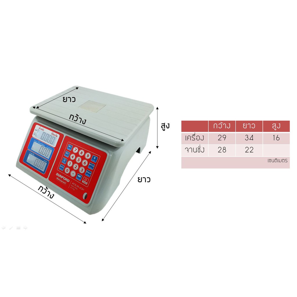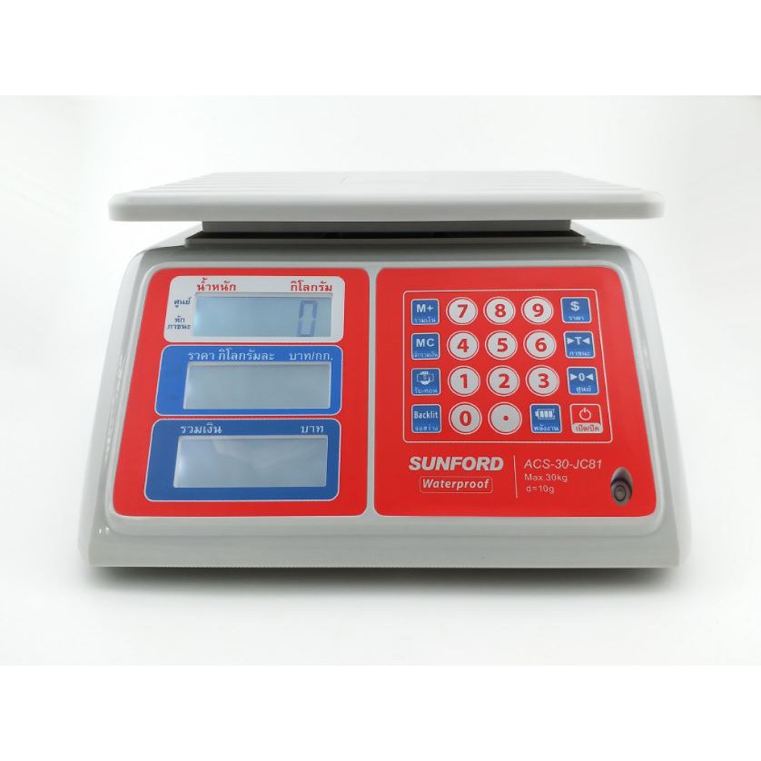 เครื่องชั่งคำนวณราคา กันน้ำ 100% SUNFORD ACS-30-JC81 พิกัด 30 กิโลกรัม ละเอียด 5/10 กรัม