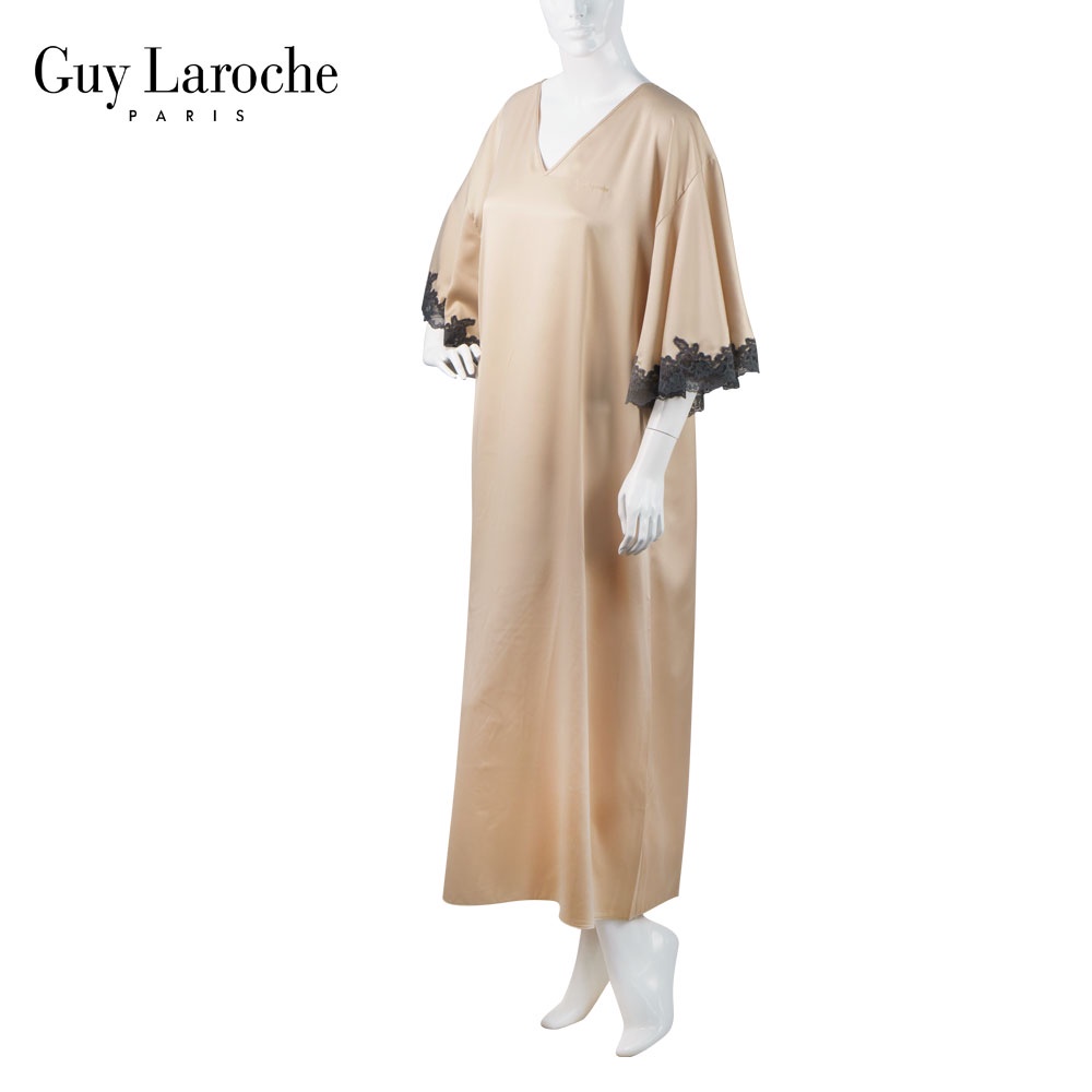 Guy Laroche GV3805 แม็กซี่ กระโปรงยาว ทรงค้างคาว คอวี ไหล่ล้ำ เนื้อผ้าซาตินเนียนนุ่ม ลื่นเย็นสบาย **ฟรีไซส