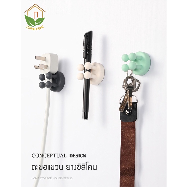 Zigma home - ตะขอ ตะขอแขวน ตะขอแขวนยางซิลิโคน ตะขอแขวนติดผนัง ตะขอแขวน อเนกประสงค์ ที่แขวนยางซิลิโคน ซิลิก้าเจล กาวนาโน