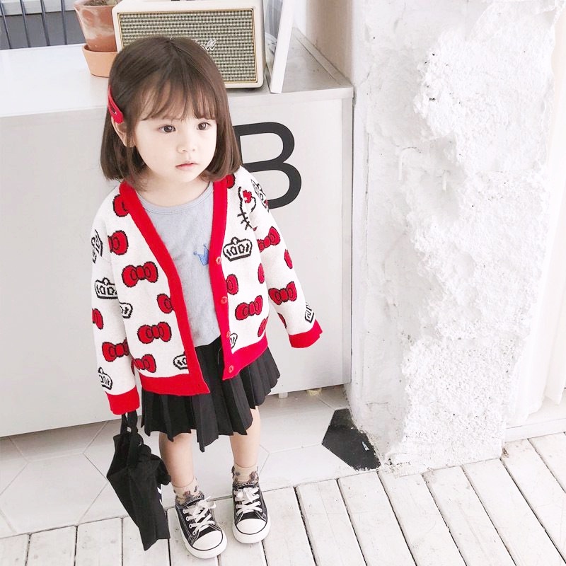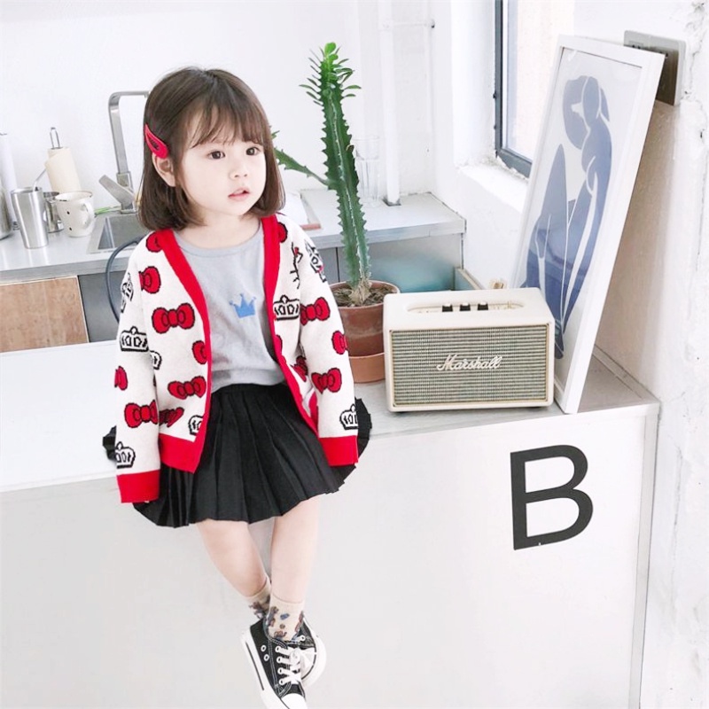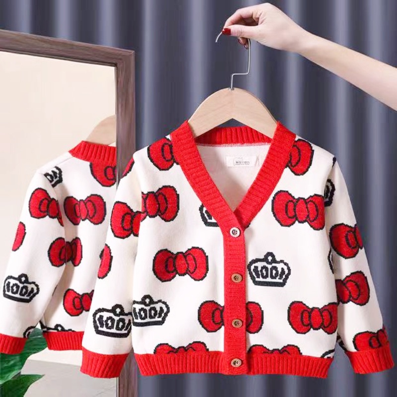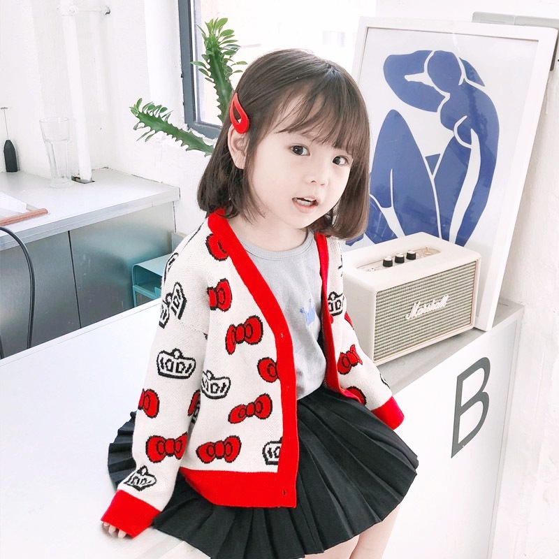 เสื้อสเวตเตอร์ถักคาร์ดิแกนโบว์เด็กผู้หญิงอายุ 1-9 ปี