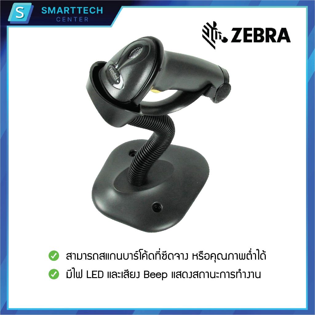 Zebra รุ่น LS2208 USB เครื่องอ่านบาร์โค้ด เครื่องสแกนบาร์โค้ด 1D พร้อมขาตั้งอัตโนมัติ ของแท้ รับประกัน 5 ปี