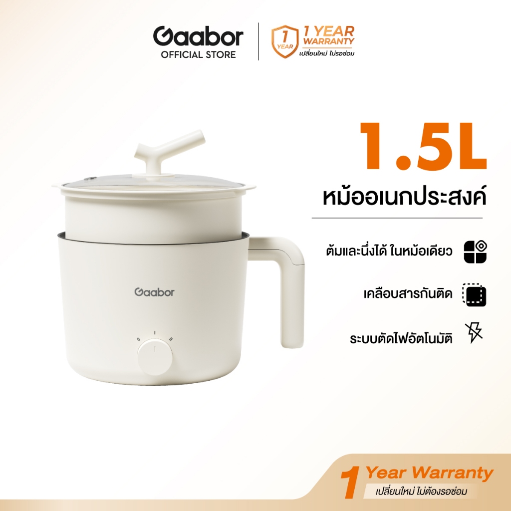 Gaabor 1.5 ลิตร หม้อไฟฟ้ามินิ 600W ทาน 1-2 คน 8in1 อเนกประสงค์ ต้มมาม่า สุกี้ ชาบู Multi-purpose Mini Pot