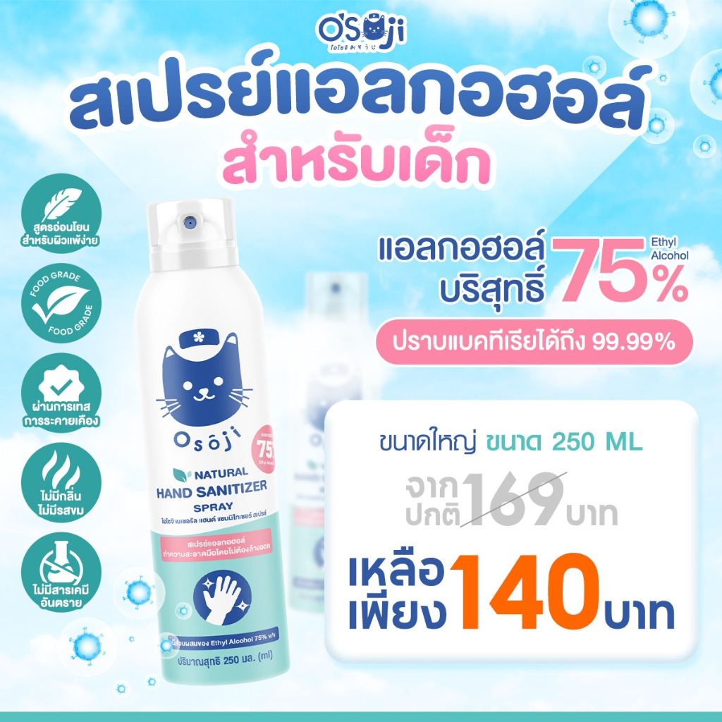 สเปรย์แอลกอฮอล์ 75% ขนาดพกพา (เหมาะสำหรับเด็ก)