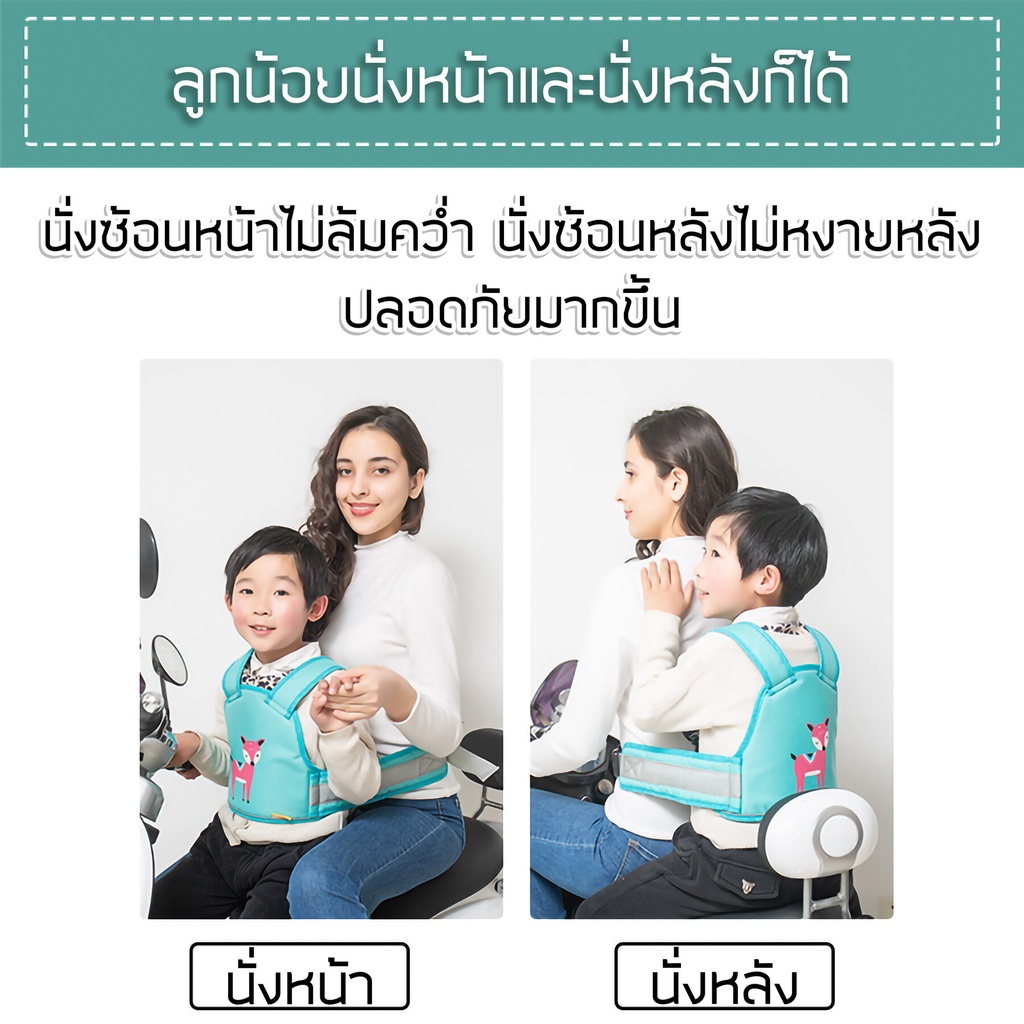 สายรัดนิรภัยเด็ก สำหรับมอเตอร์ไซค์ นั่งหน้า-หลังได้ ผ้าระบายอากาศรังผึ้ง Kids Motorcycle Safety Belt
