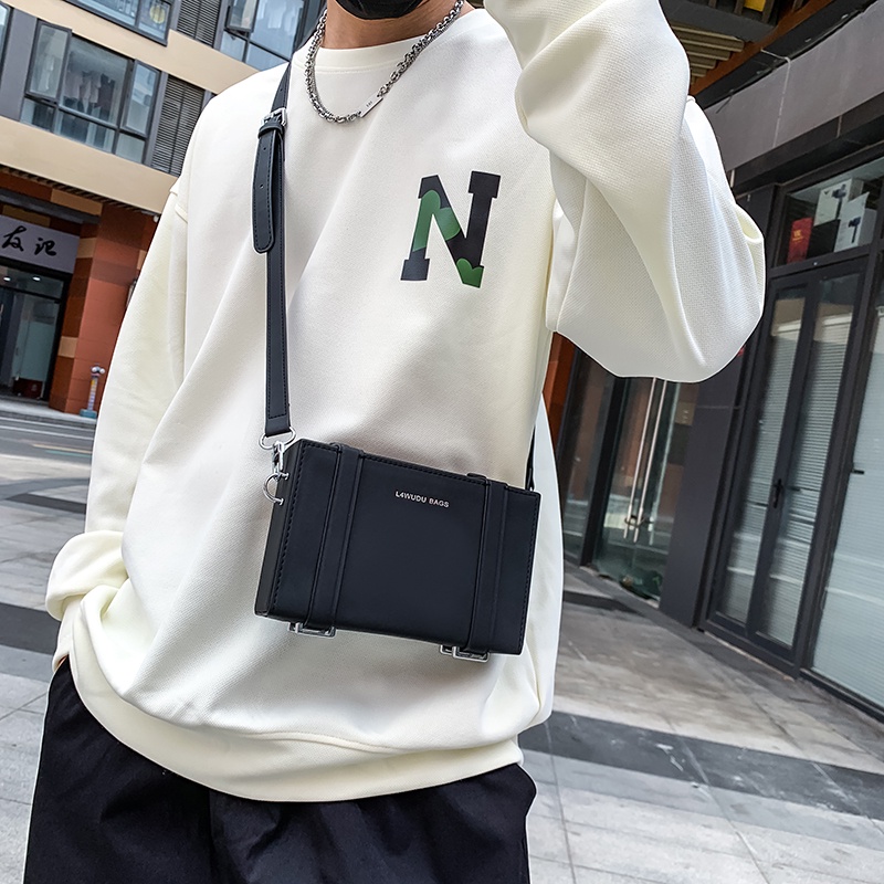 Leacat กระเป๋าสะพายไหล่ ทรงสี่เหลี่ยม ขนาดเล็ก แฟชั่นสําหรับผู้ชาย และผู้หญิง