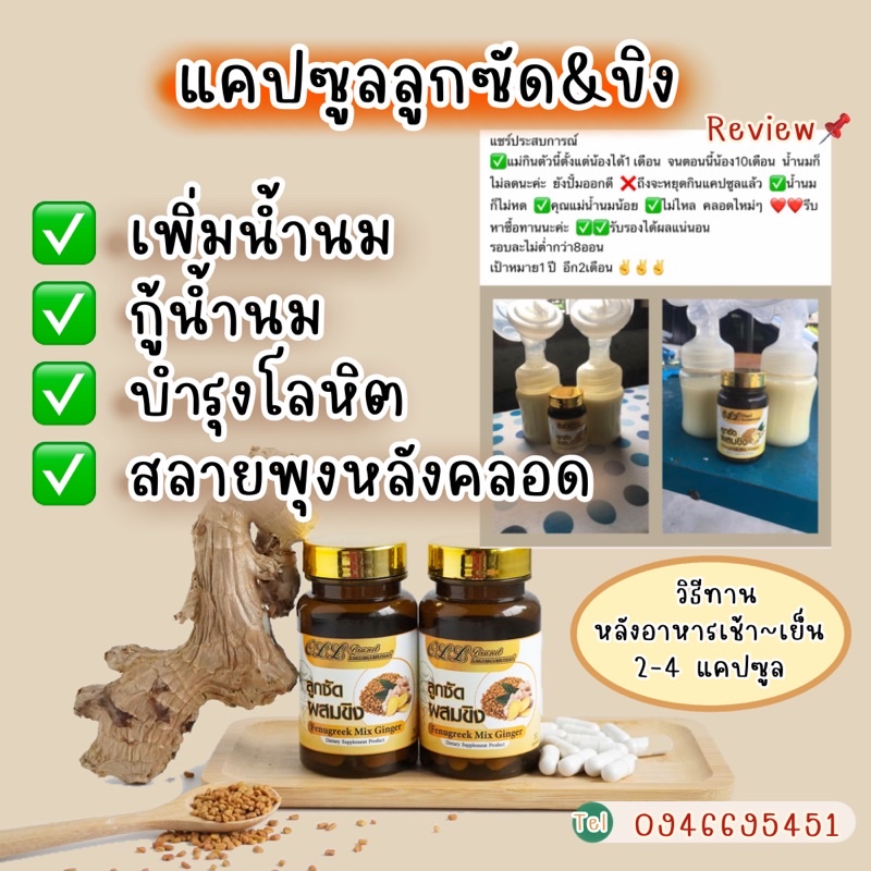 ลูกซัด(ของแท้)ผสมขิงเพิ่มน้ำนมแบบแคปซูล 1กระปุกมี30 แคปซูลทานได้ 1 เดือนทานดี ผลิตภัณฑ์ของแท้100%