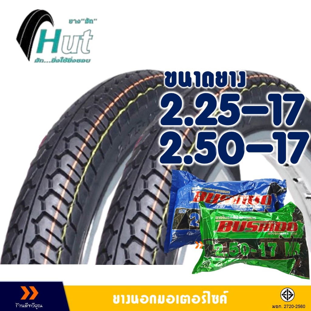 ยางนอก HUT ขอบ 17 ลายแม็กซิ่ง ยางหน้า 225-17 , ยางหลัง 250-17 มีตัวเลือกสินค้ายางใน