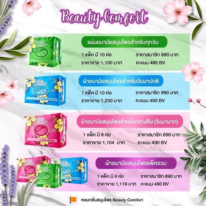 ผ้าอนามัยสมุนไพร บิวตี้คอมฟอร์ท Beauty Comfort สีชมพู