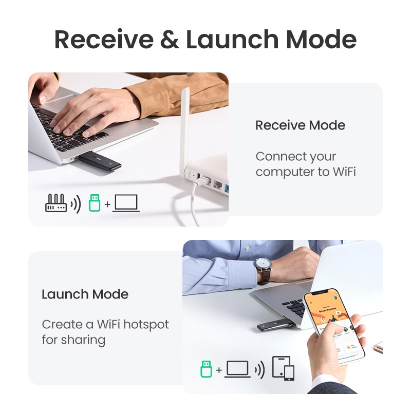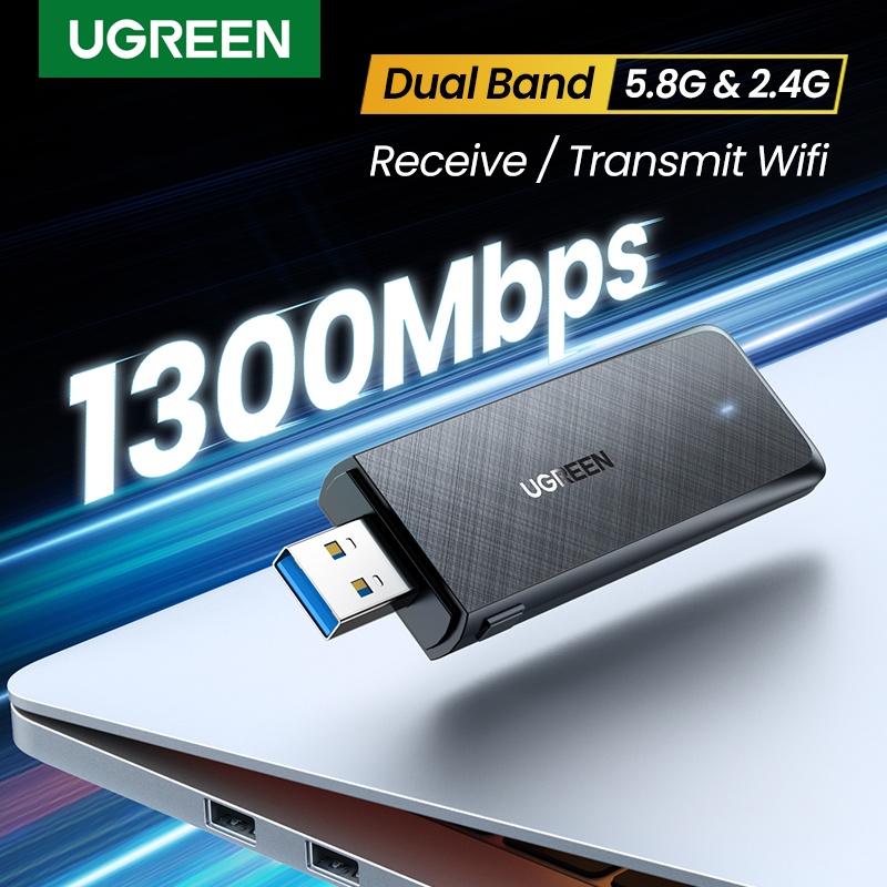 Ugreen อะแดปเตอร์เครือข่าย WiFi ไร้สาย 1300Mbps ปลั๊ก USB 2.4G และ 5.8G สําหรับคอมพิวเตอร์ PC