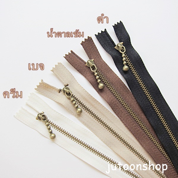 ซิป หัวลูกตุ้ม เบอร์ 3 สีทองเหลือง ยาว 25 cm. 10 นิ้ว