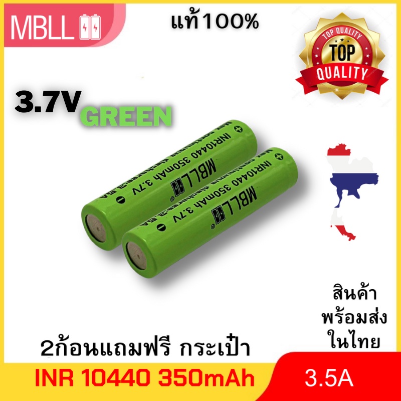 แบตเตอรี่ MBLL INR 10440 350mah 3.5A หัวเรียบ (ขนาดเท่า AAA) 3.7v ราคาต่อ 2 ก้อน มีแถมกระเป๋า