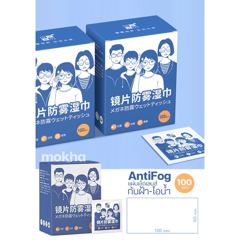 ผ้าเช็ดเลนส์แว่น ป้องกันฝ้า กันไอน้ำ (กล่อง100ซอง) ผ้าเช็ดแว่นตากันหมอก (Anti-Fog Nano Wipe)