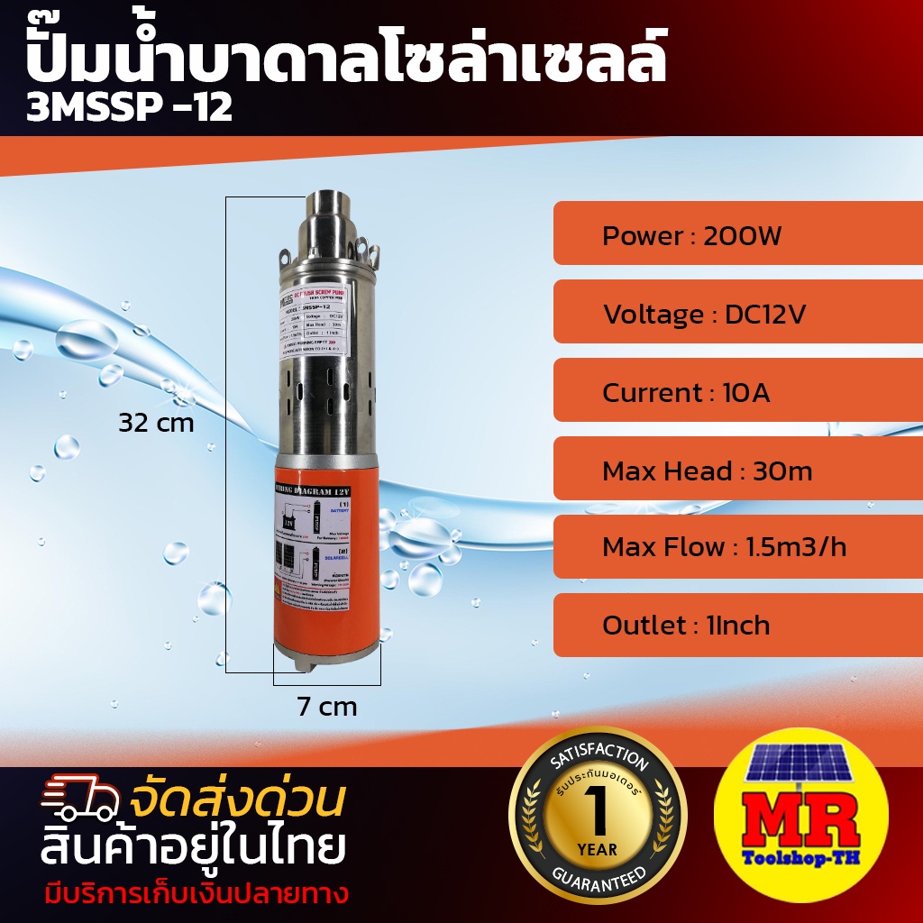 MTEC ปั๊มน้ำบาดาลโซล่าเซลล์ DC12V 200W รุ่น MSSP-12 ขนาดท่อส่งน้ำ 1 นิ้ว ปั๊มน้ำชนิดแปรงถ่าน