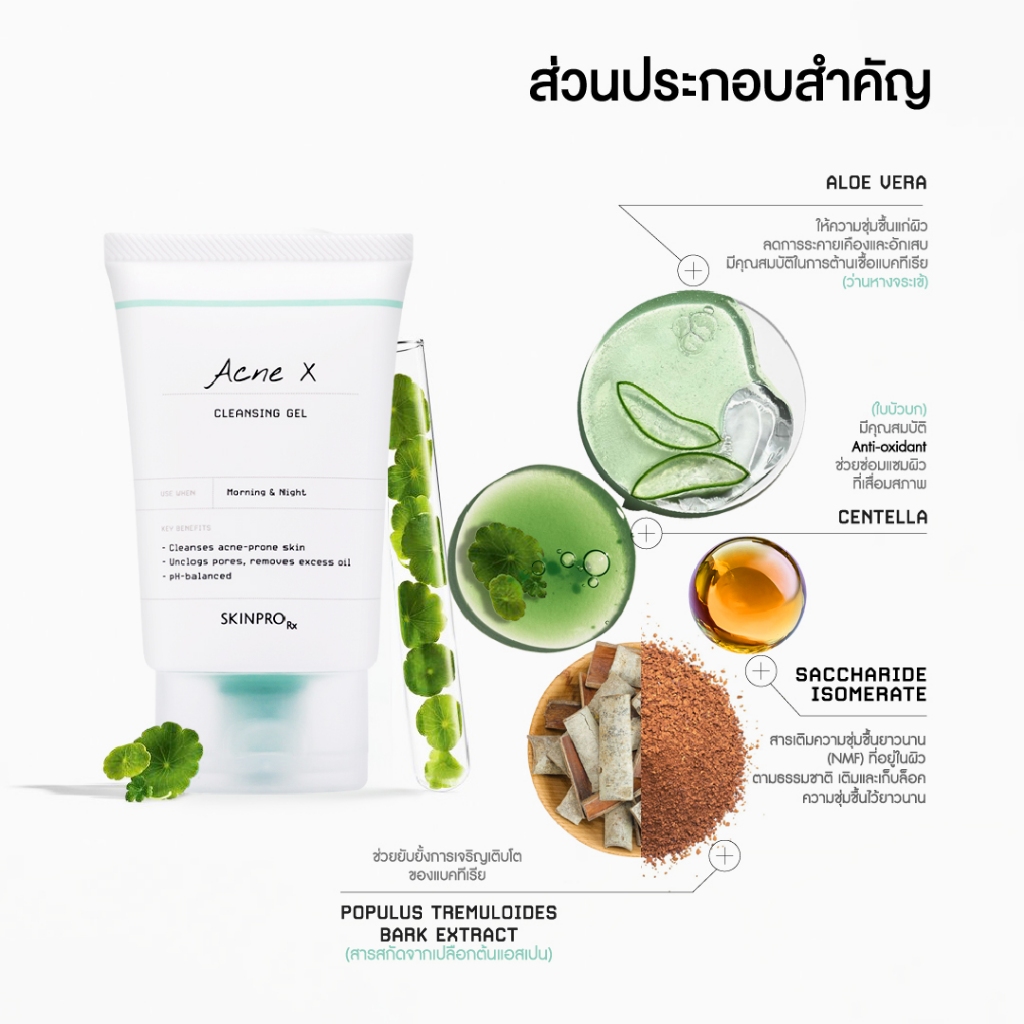 ขายดีอันดับ 1 SKINPRO Rx Acne X Cleansing Gel 50ml คลิ่นซิ่งเจลสูตรสำหรับผิวมัน/เป็นสิว ลดการเกิดสิว