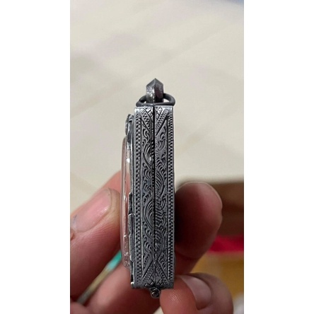 ตลับเงินผสมแต่งเก่าปิดหลังใส่พระสมเด็จขนาด2.9x4.2cm