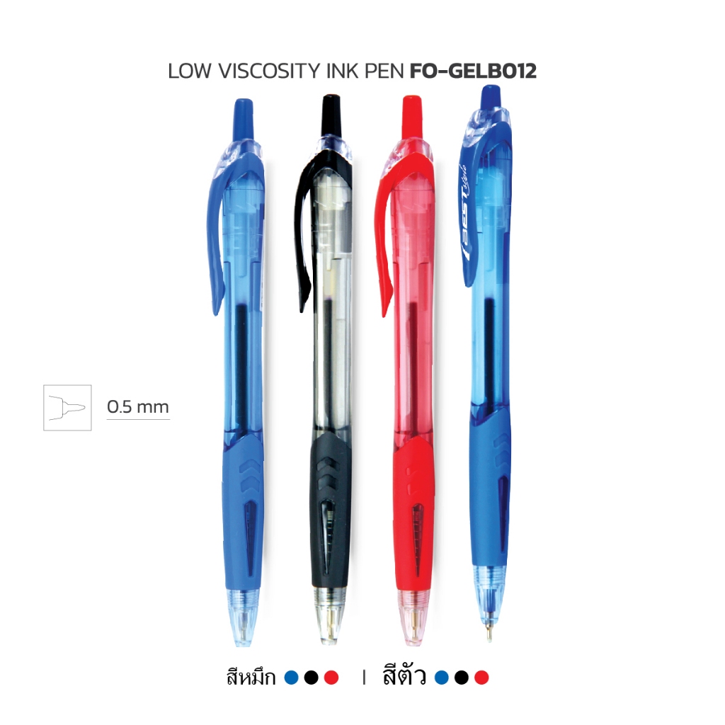 FlexOffice FO-GELB012 ปากกาลูกลื่น 0.7mm - สีน้ำเงิน/สีดำ/สีแดง - 1/3ด้าม