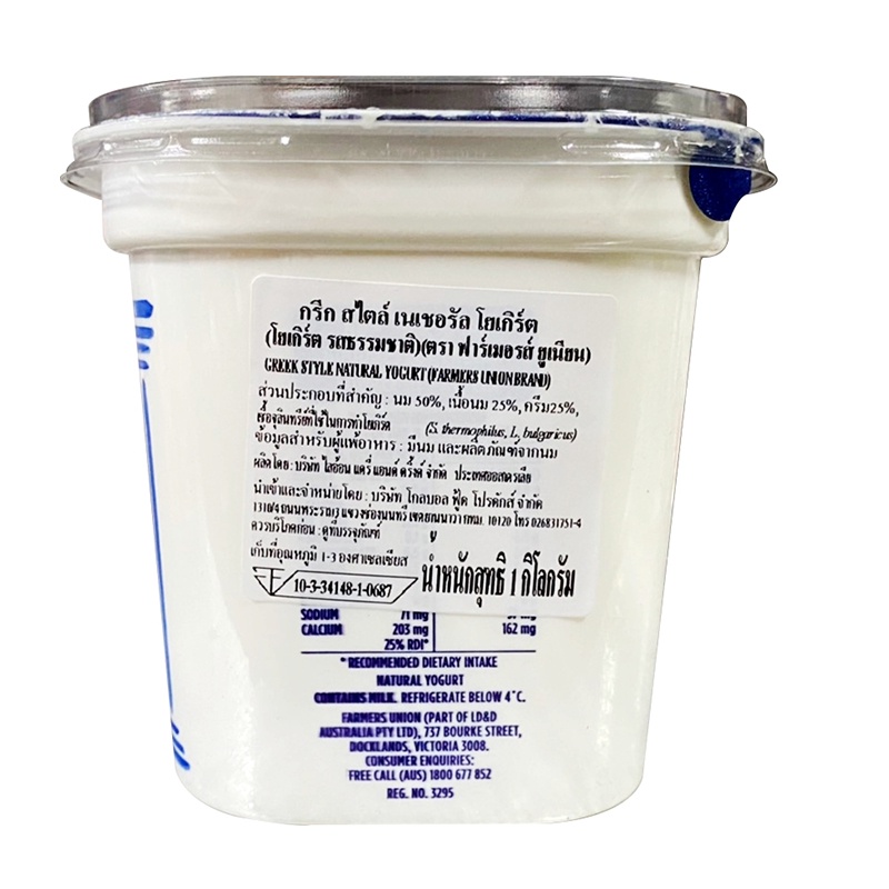 ฟาร์เมอร์ส์ยูเนียน กรีกโยเกิร์ต 1 กิโลกรัม Farmers Union Greek Yogurt 1Kg