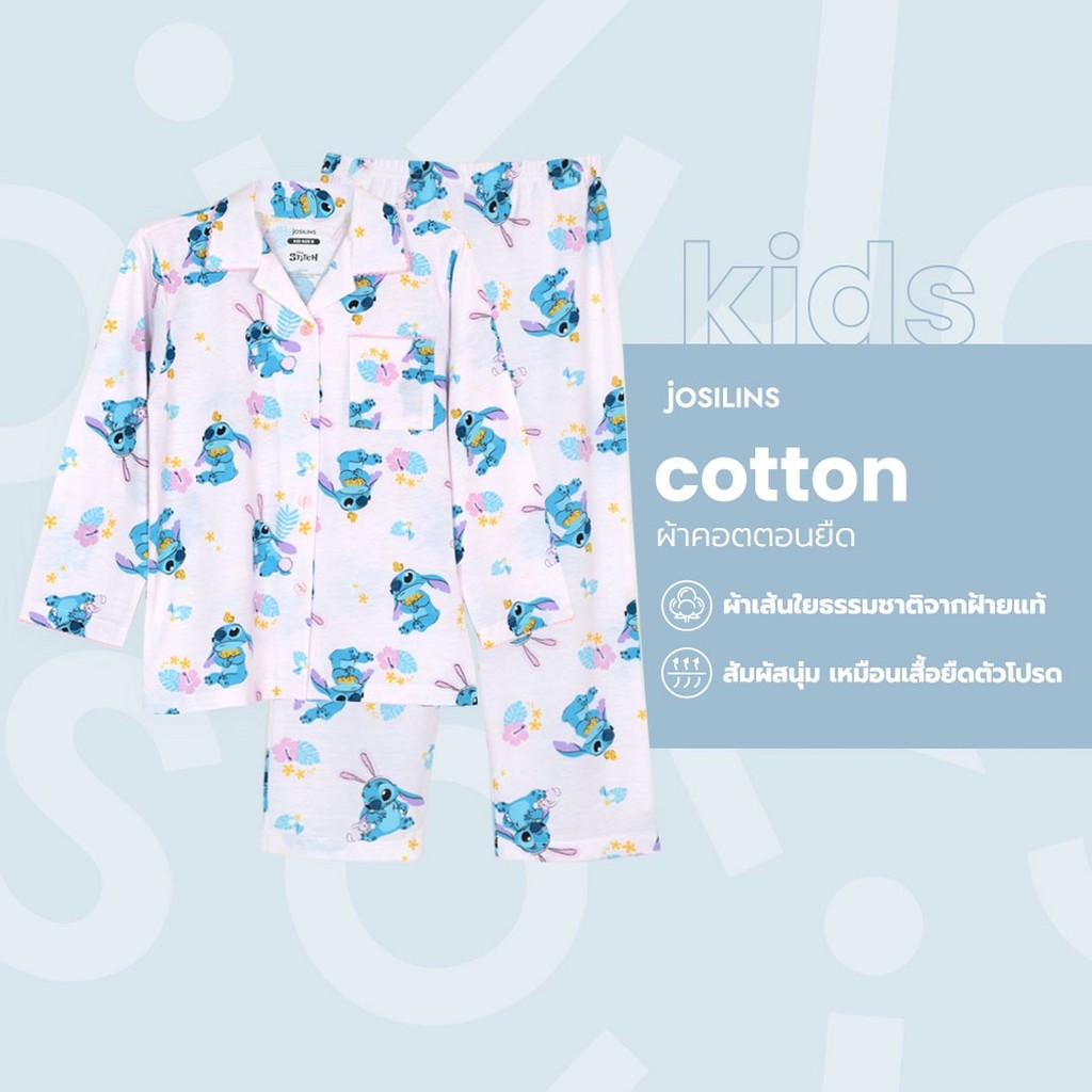 Josilins ชุดนอน ชุดอยู่บ้าน เด็ก ป้าย momoji ลิขสิทธิ์ ดิสนีย์ Disney ลาย Stitch Cutie ผ้ายืด