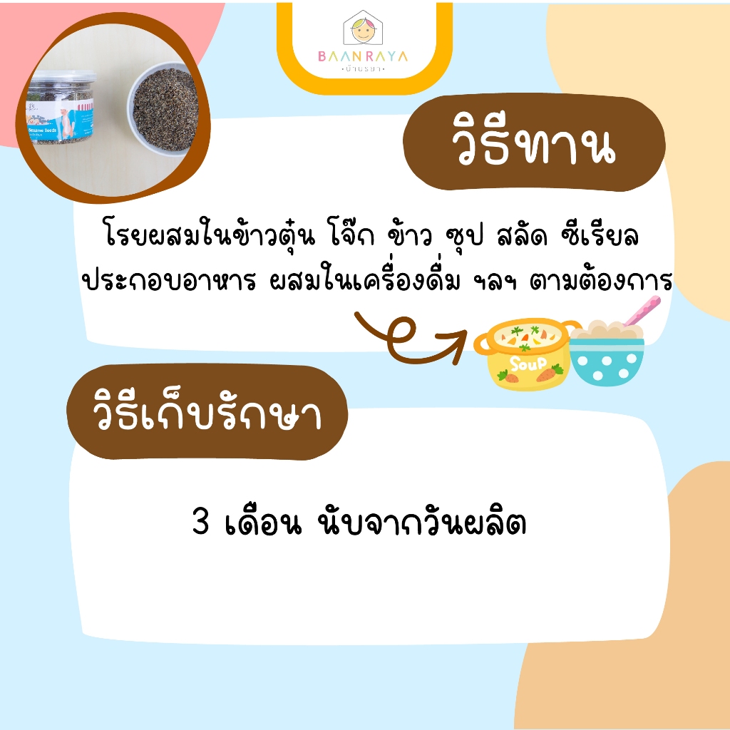 งารวม 3 ชนิด คั่วบด 6M+ ทานง่าย หอมธัญพืช สะดวกในการเตรียม เพียงแค่โรยในเมนูต่างๆที่ต้องการ บ้านรยา (6m+)