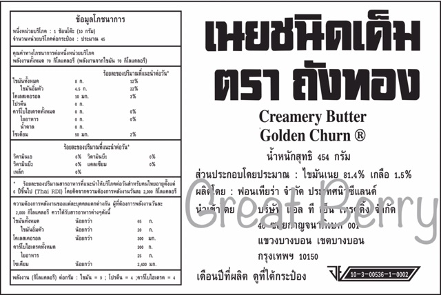 Golden Churn Butter เนยถังทอง เนยสดแท้ชนิดเค็ม ขนาด 454 กรัม