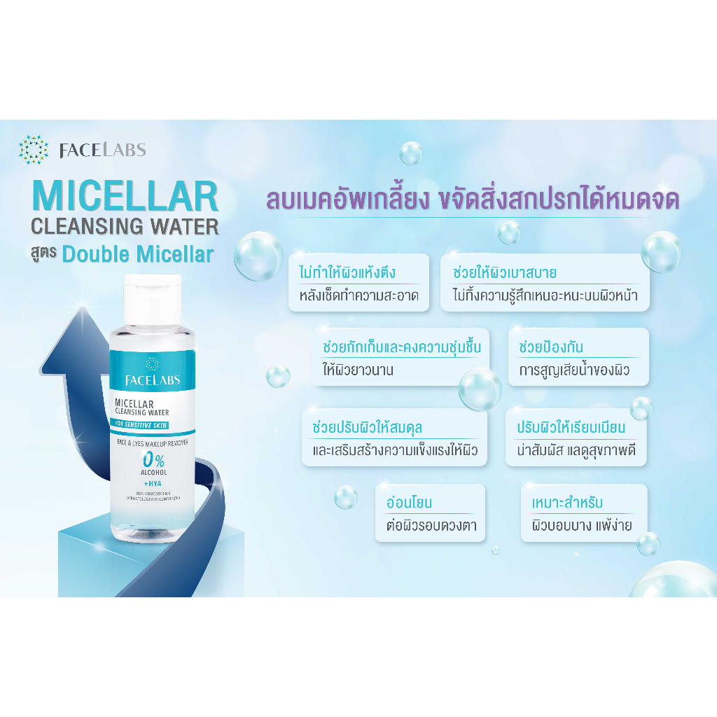 คลีนซิ่ง เช็ดเครื่องสำอาง FACELABS Micellar Cleansing Water 8D HYA 100 ml สะอาด ไม่อุดตัน ผิวแพ้ง่าย
