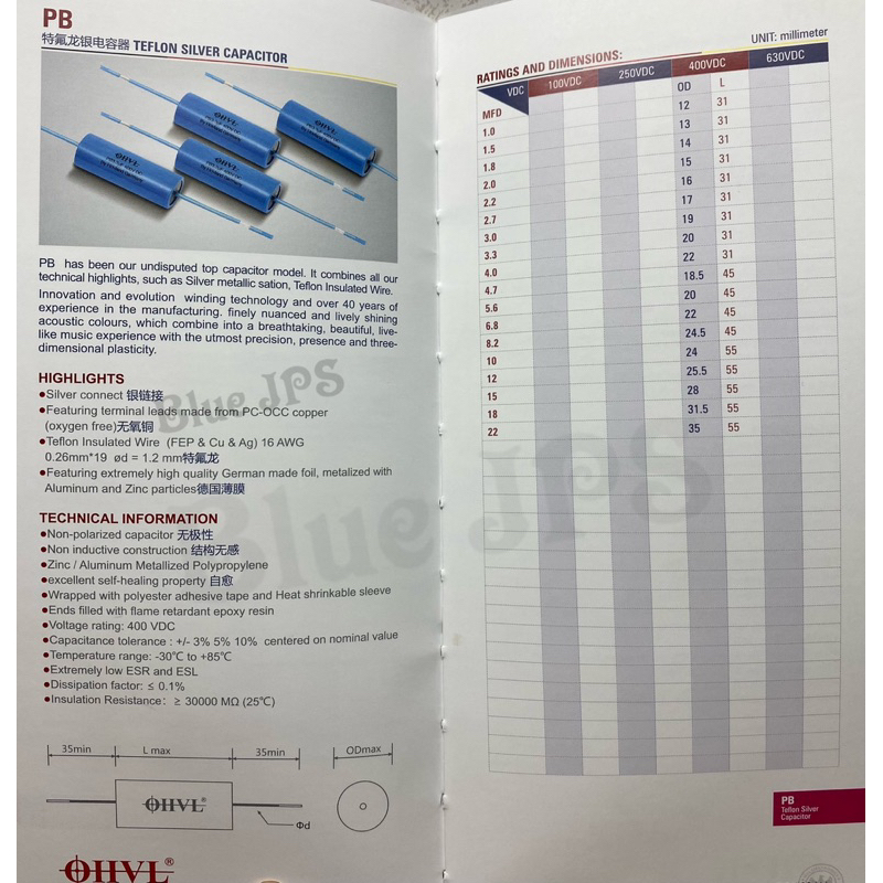 OHVL 2.7uf400v(สั่ง4ตัวขึ้นแถม2.5/400V Red gold)Cเสียงแหลม made in Germnay ขาเป็นลวดเงิน (ราคาต่อชิ้น)