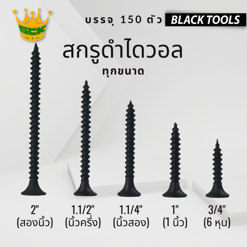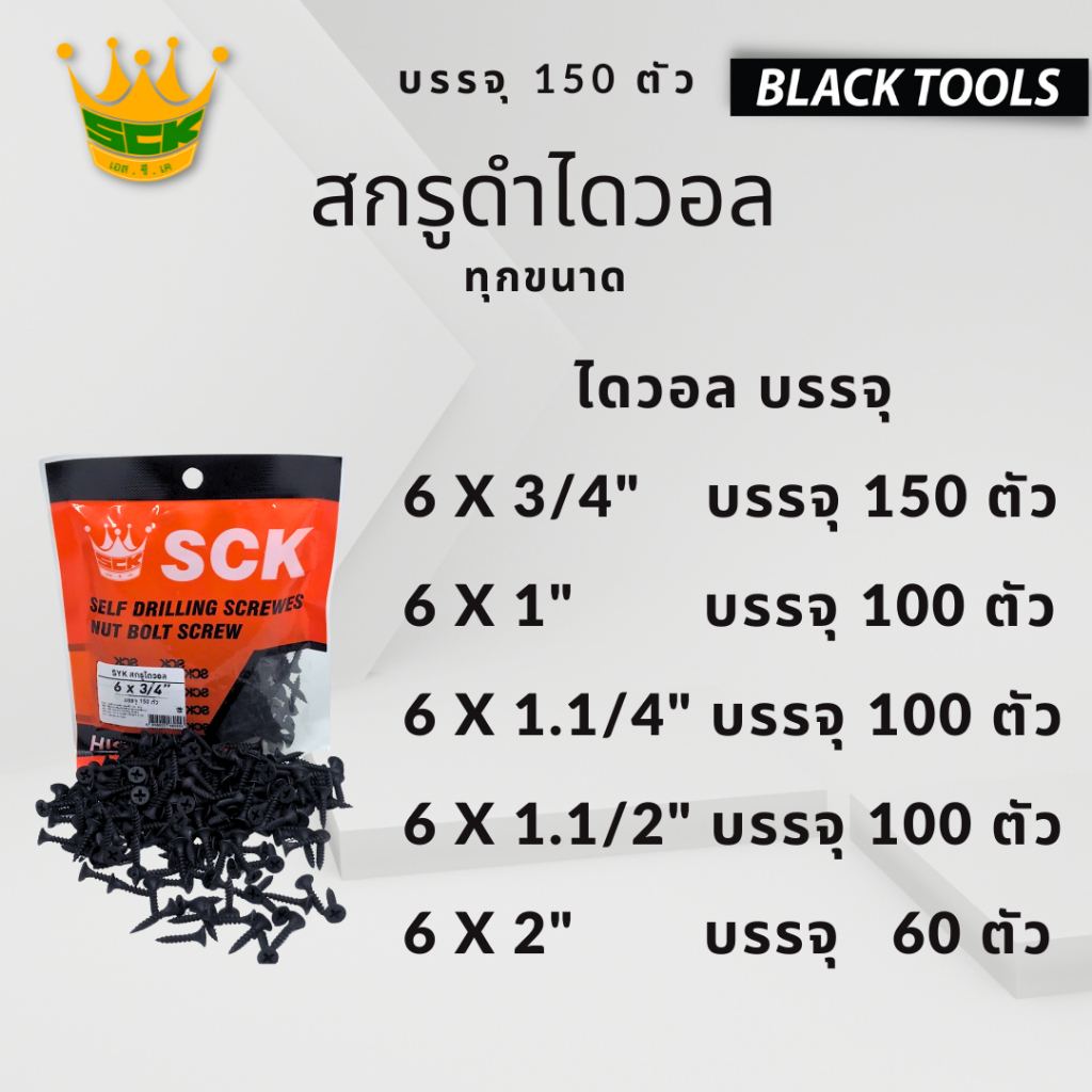 SCK สกรูดำ สกรูไดวอล บรรจุถุง สำหรับยิงฝ้าเพดานผนังเบา Drywall Screws BLACKTOOLS