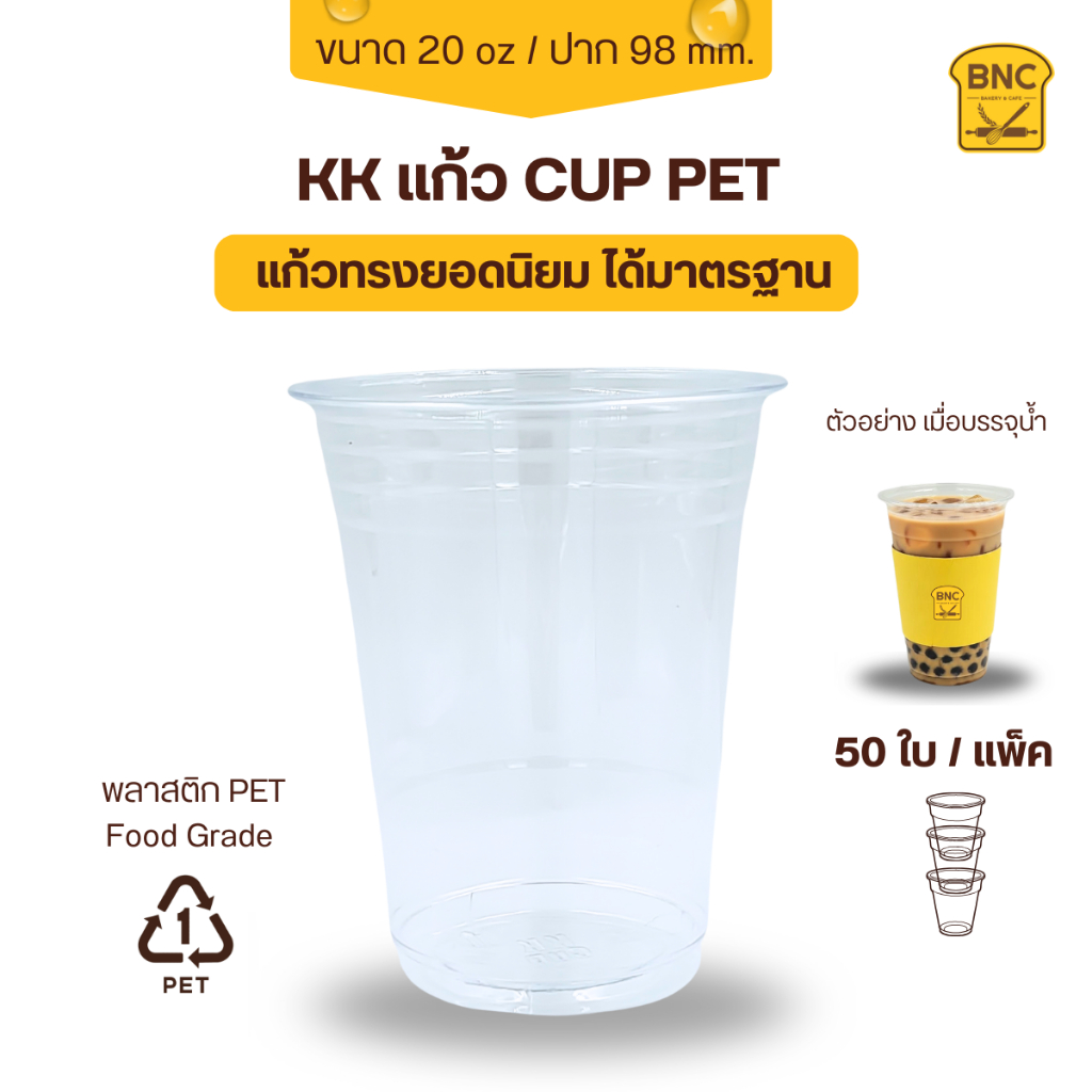 แก้ว PET แก้วพลาสติก PET แก้วเนื้อแข็ง ทรงสตาร์บัค ขนาด 16,20,22 OZ ปาก 98 mm (1 แพ็คมี 50ชิ้น)