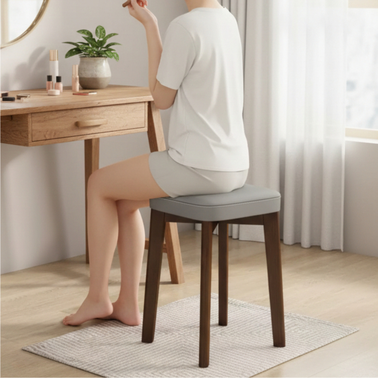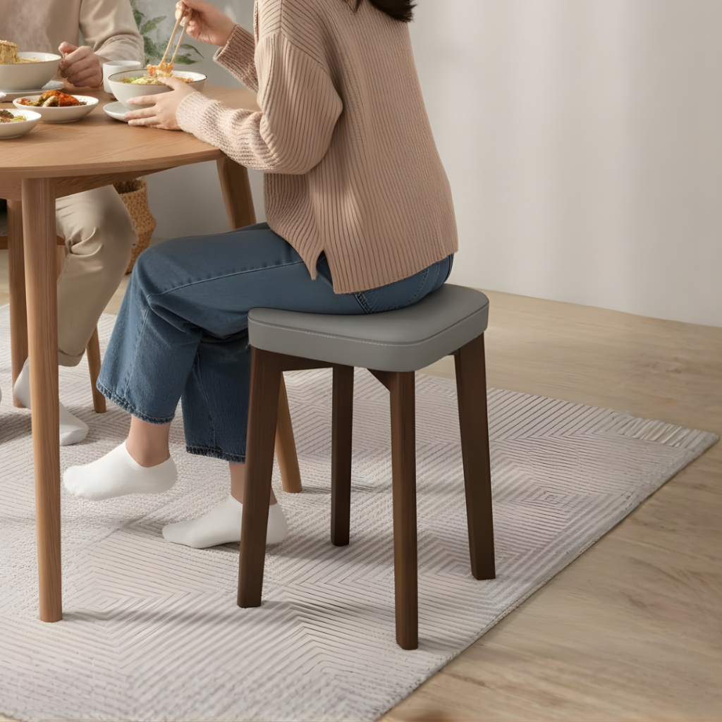 Naibaan เก้าอี้สตูล Minimal สูง 46 ซม.รับน้ำหนักได้ 150 กก. เบาะผ้า / เบาะหนัง สตูลไม้ Wooden Chair