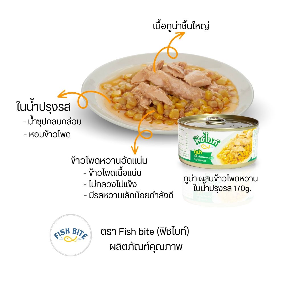 Fish Bite ทูน่า สูตรผสมผักรวม, สูตรผสมข้าวโพดหวาน ในน้ำปรุงรส ขนาด 170g. 8กระป๋อง