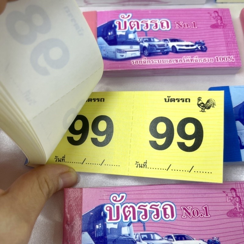 ยกโหล บัตรรถ บัตรจอดรถ 2 ตัว(เบอร์ 00-99) 5สี ตั๋วรถ บัตรฉีก