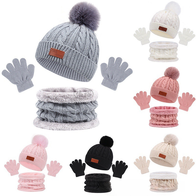 เซตหมวกไหมพรมเด็ก 3 ชิ้น (หมวก+ผ้าพันคอ+ถุงมือ) ให้ความอบอุ่น กันหนาว สําหรับเด็ก อายุ 1-5 ปี