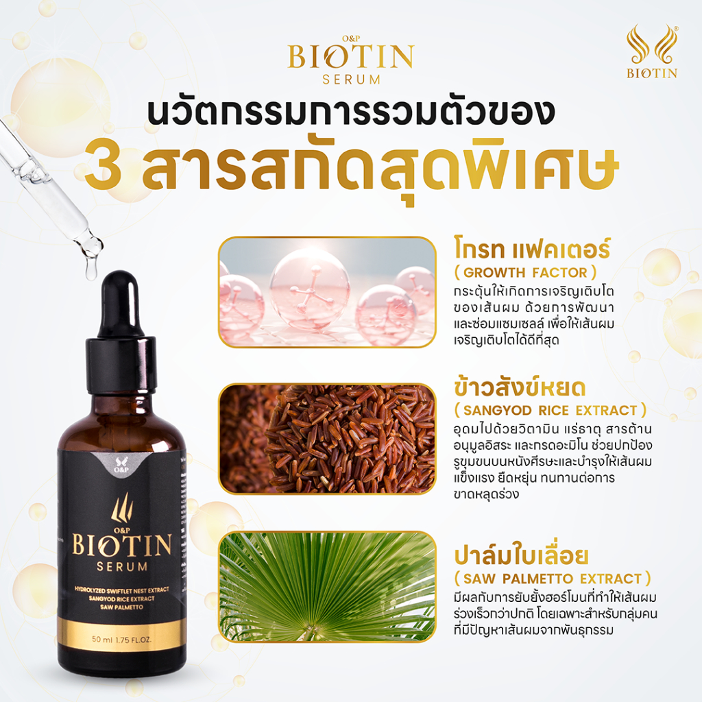 Biotin Serum บำรุงเส้นผมเฉพาะจุด ป้องกันผมร่วง ช่วยให้ผมดกดำเงางาม 1 ขวด ปริมาณ 50 Ml.
