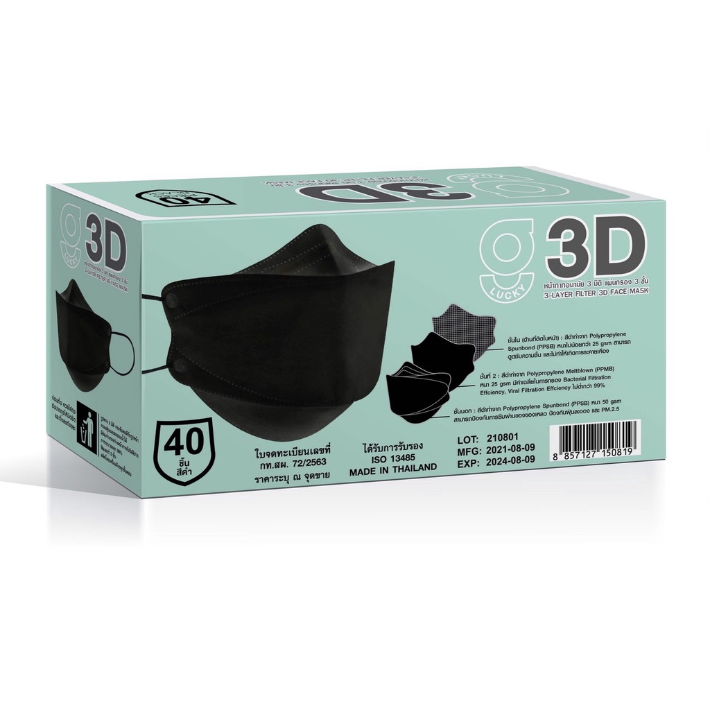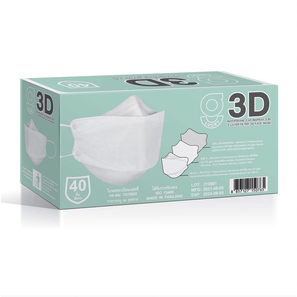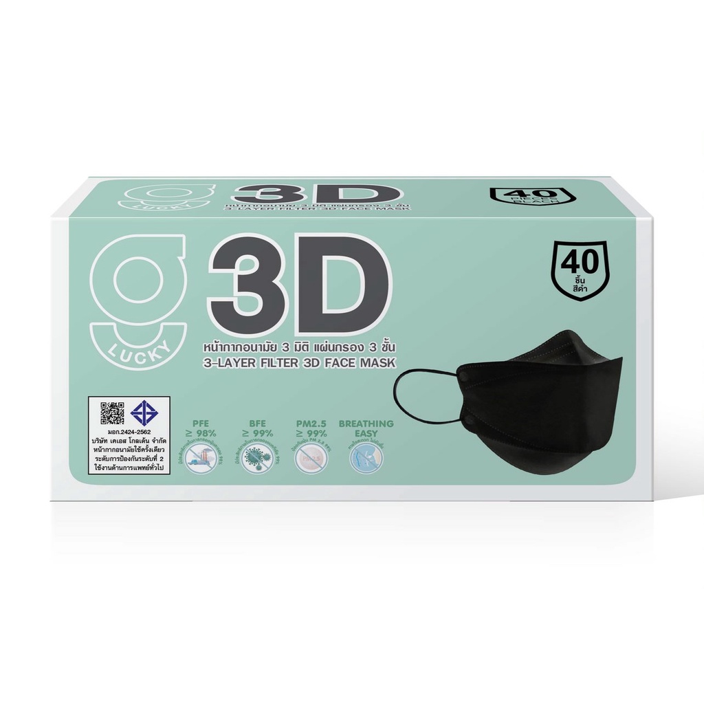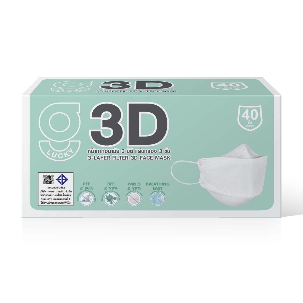ถูกที่สุด !! G LUCKY 3D แบบกล่อง บรรจุ 40 ชิ้น หน้ากากอนามัย ทรง 3D ความหนา 3 ชั้น ป้องกันไวรัสและแบคทีเรีย หายใจสะดวก