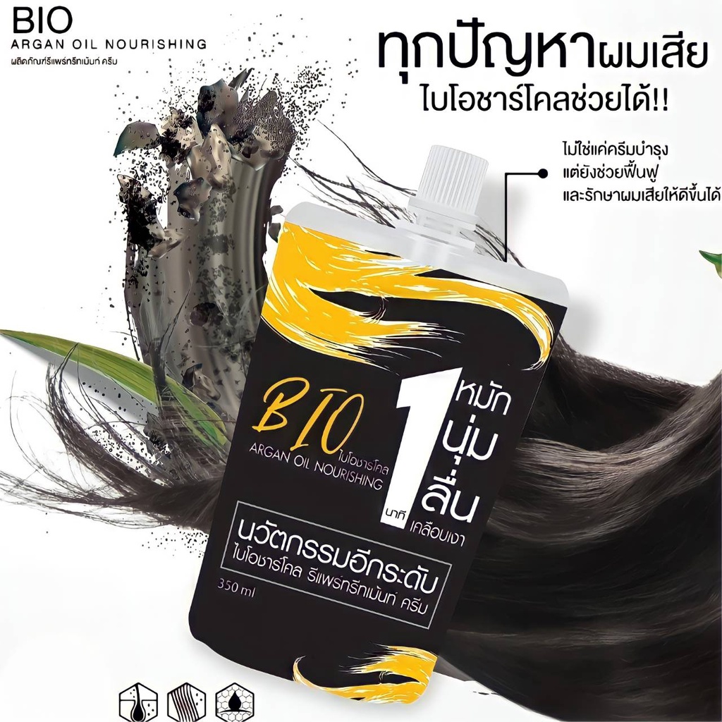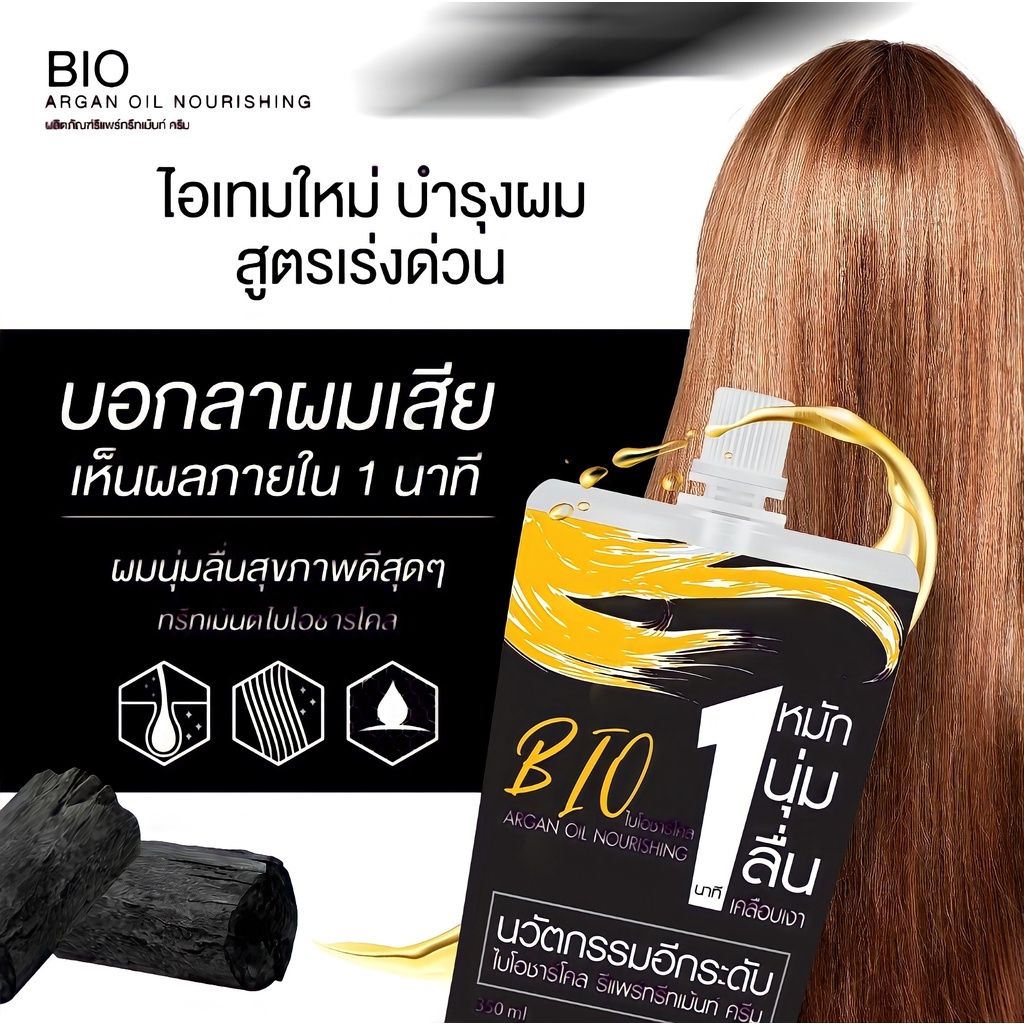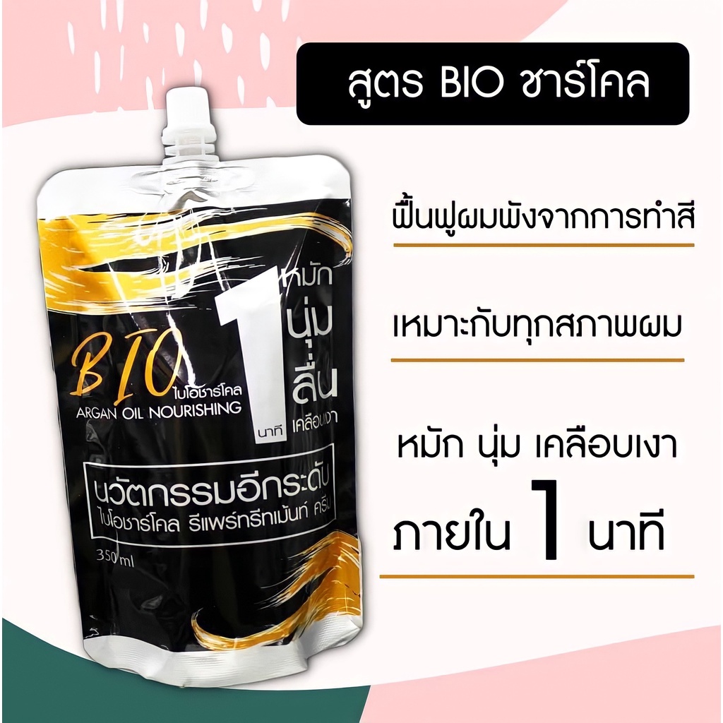 ทรีทเม้นท์ไบโอชาร์โคล ฟื้นฟูผมพังจากการทำสี เหมาะกับทุกสภาพผม หมัก นุ่ม เคลือบเงา ภายใน1นาที ขนาด 300ml. By OneBeauty