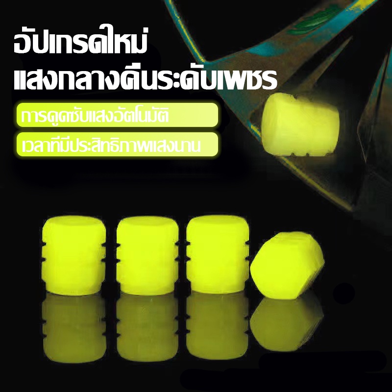 AutoHome ฝาครอบวาล์วยางล้อรถยนต์ เรืองแสงในที่มืด เรืองแสง จุกลมรถยนต์ จุกลมมอเตอร์ไซค์ จุ๊บลมรถยนต์ จุกยางรถยนต์ E47