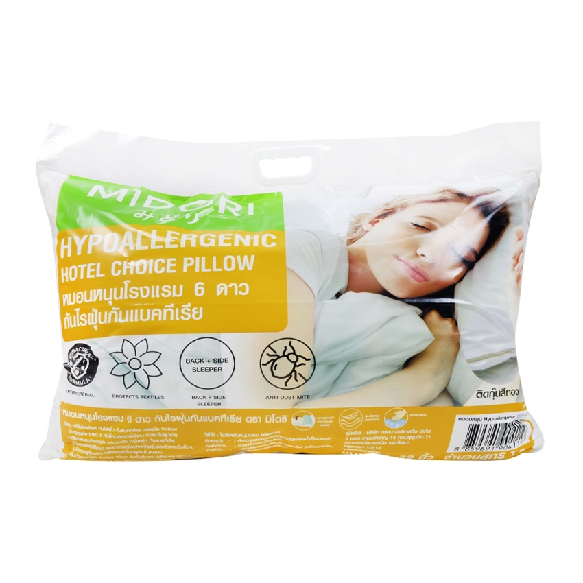 มิโดริ หมอนหนุนโรงแรม กันไรฝุ่น 19X29นิ้ว สีขาว MIDORI HOTEL PILLOW ANTIBAC 19X29