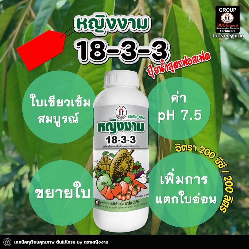 18-3-3 ตราหญิงงาม ปุ๋ยน้ำฟอสเฟต pH7.5 ใบเขียวเข้มสมบูรณ์ ขยายใบ เพิ่มการแตกอ่อน