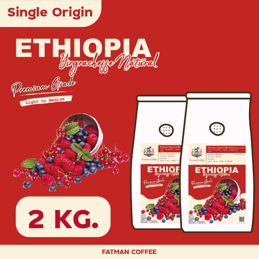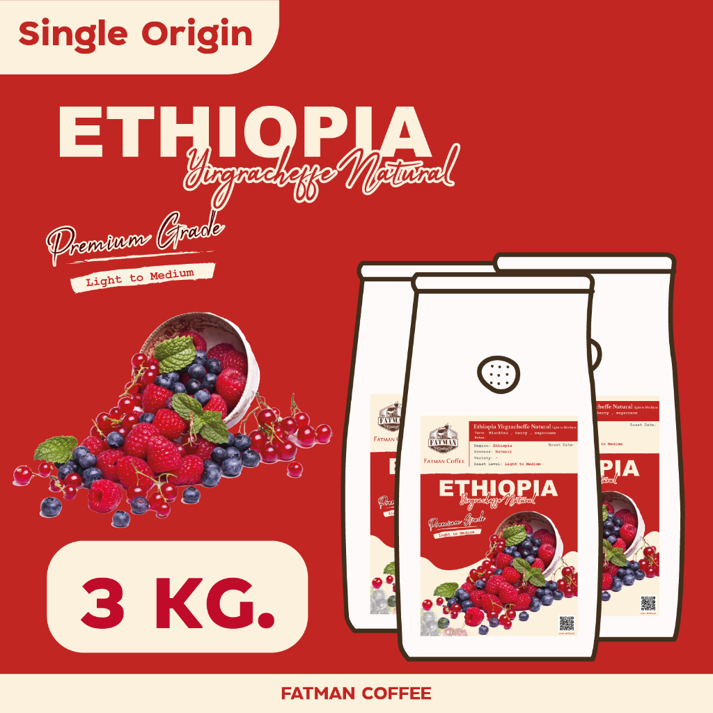 เมล็ดกาแฟคั่วอ่อนไปกลาง ราคาส่ง 1-3 Kg. Ethiopia Yirgracheffe Natural Light to Medium Premium Grade