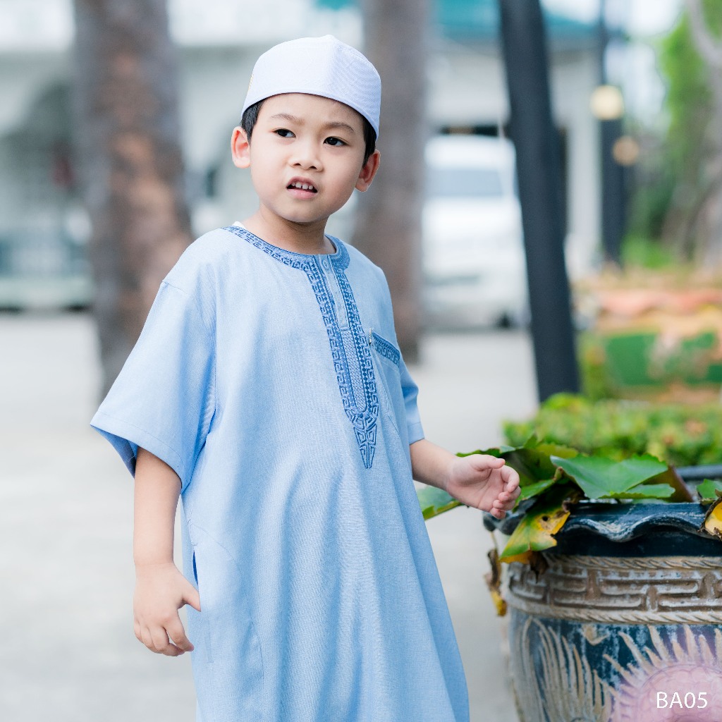 ชุดโต๊ปเด็กผู้ชายแขนสั้น แบรนด์(อิก๊าฟ) ชุดอิสลามเด็กคอกลมปักลาย คละลาย Ba05วาริสมุสลิม ep1.