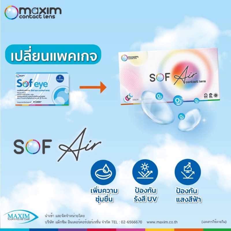 คอนแทคเลนส์สายตา maxim sofeye แบบใส (รายเดือน) 1 แถม1
