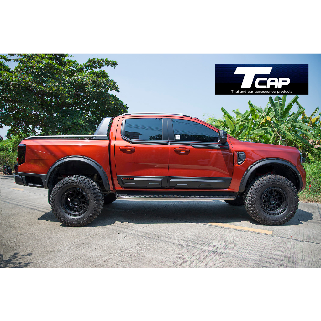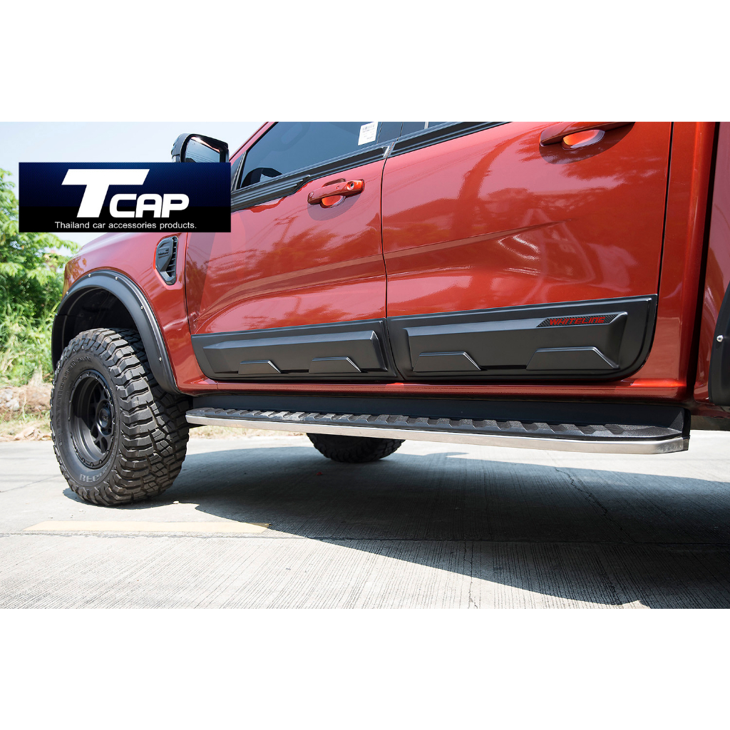 กาบข้าง กาบกันกระแทกประตู FORD RANGER NEXTGEN 2022 4ประตู 4Drs และ 2ประตู CAB 1ชุด มี 4 ชิ้น สีดำด้านโลโก้แดงเคฟล่า