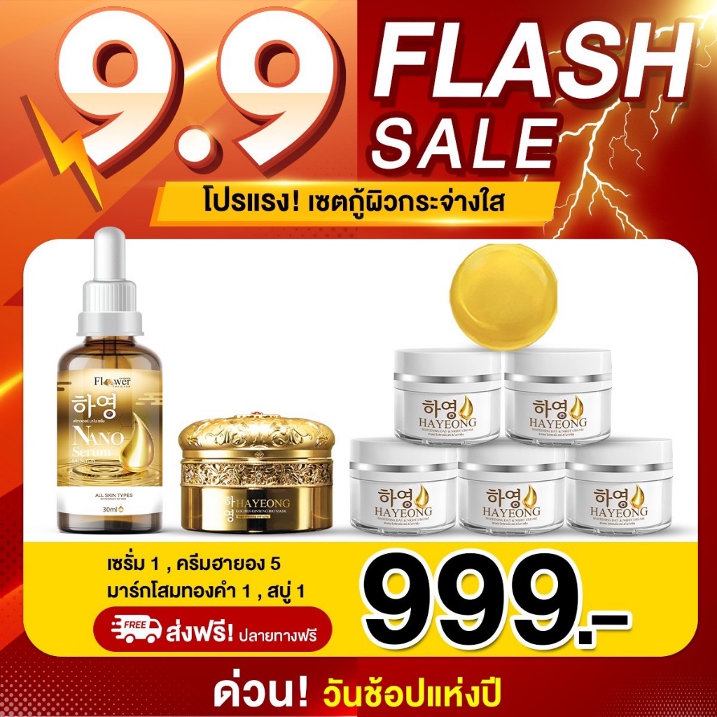 ส่งฟรี 9.9 [999 บาท ] ครีมฮายอง ครีมโสมแดงเกาหลี เซรั่ม นาโน มาร์คโสมทองคำ สบู่ฮายอง กระ ฝ้า ริ้วรอย จุดด่างดำ
