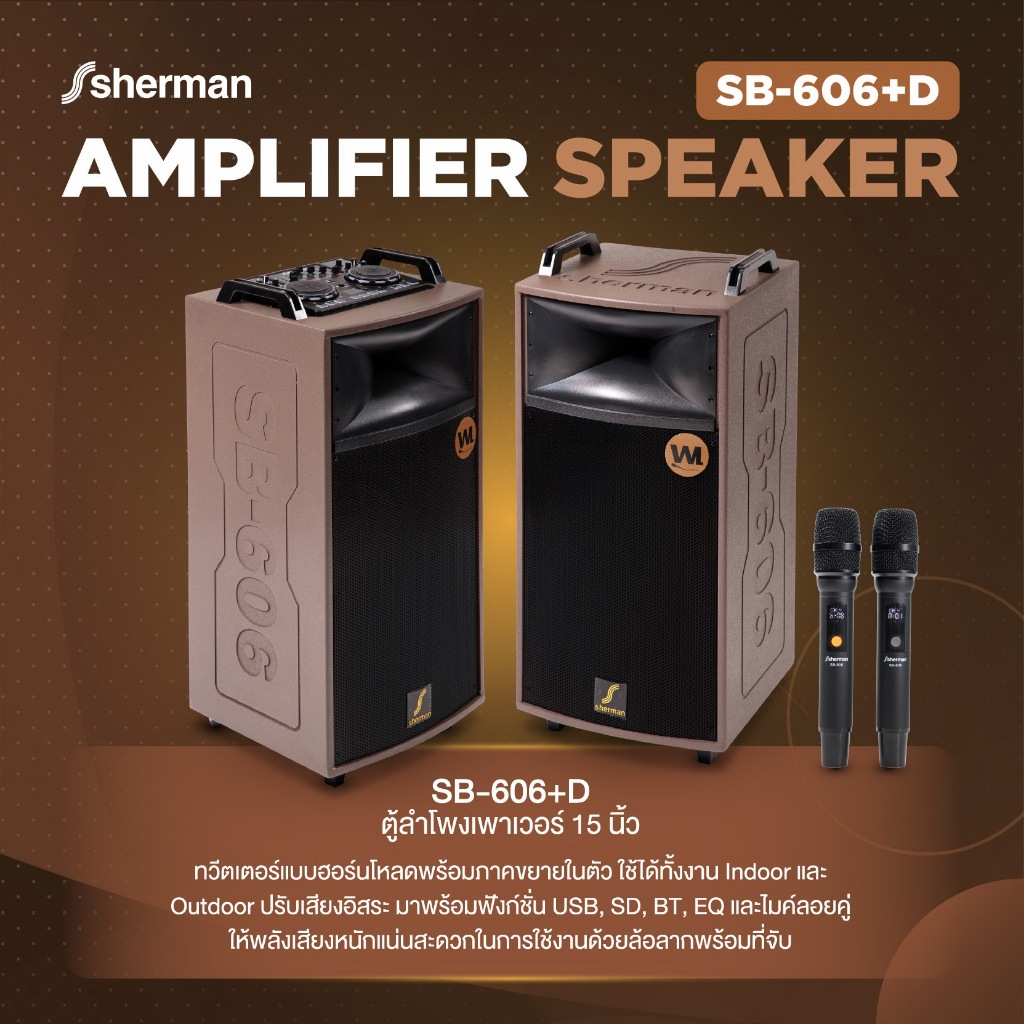 Sherman ชุดลำโพงขยายกลางแจ้ง ขนาด 15 นิ้ว รุ่น SB-606+D