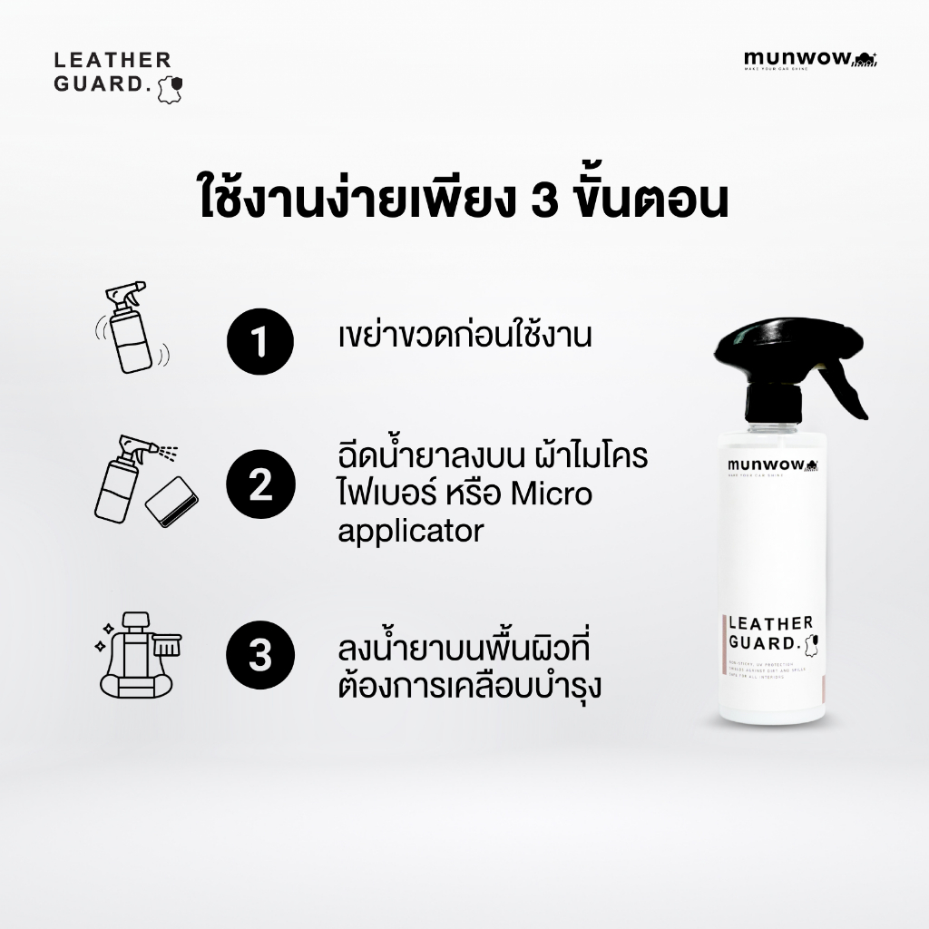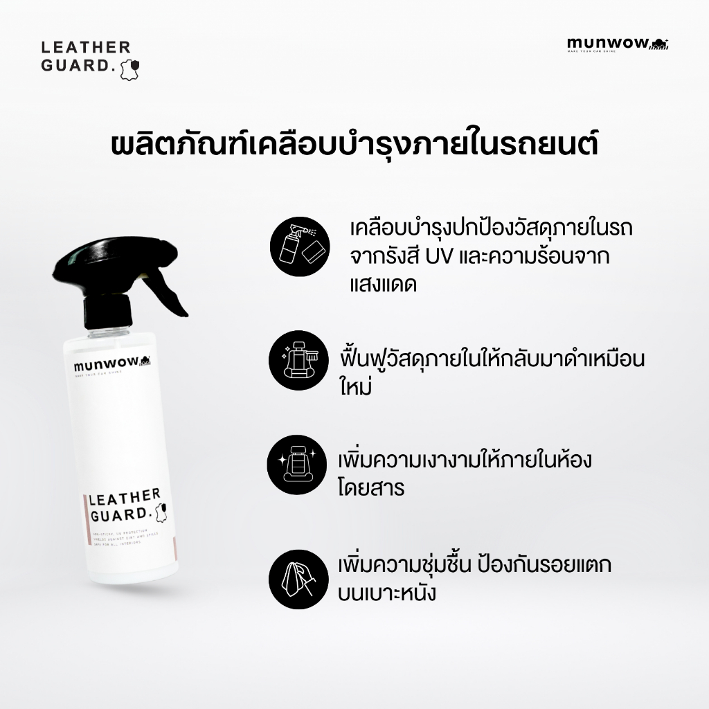 Munwow Leather guard (น้ำยาเคลือบปกป้องเบาะหนังและวัสดุภายในรถยนต์ ไม่เหนียวเหนอะหนะ)