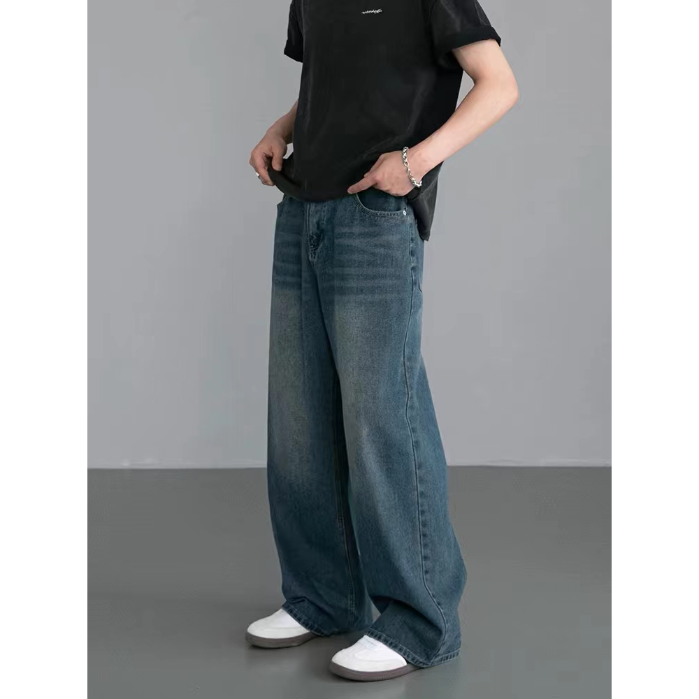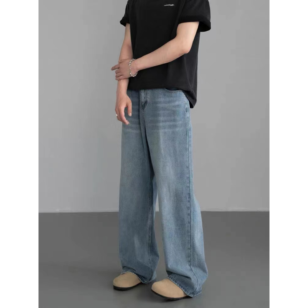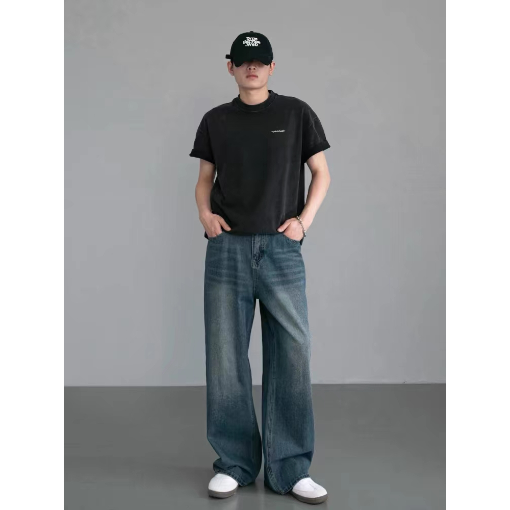 กางเกงยีนส์กระบอกใหญ่ กระบอกลิซ่า ยีนส์สนิมเขียวฟอก S-3XL